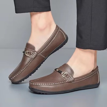 Mocasines informales de cuero genuino para hombre, zapatos de vestir blancos, negros y marrones, talla 38-46, plantilla de EVA suave antideslizante para primavera y verano